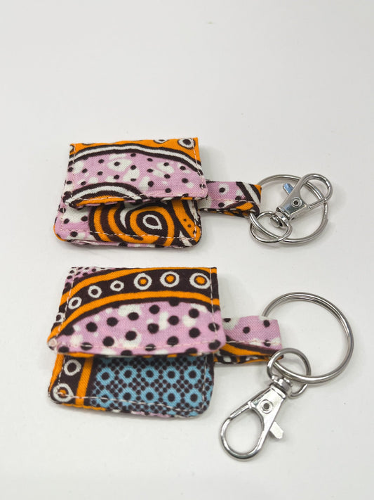 Pink/Blue Print African Print Coin Keyring